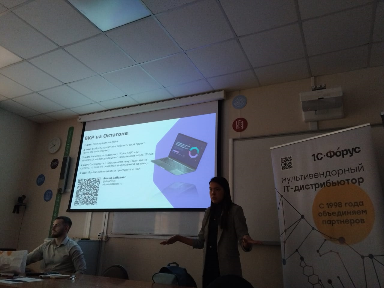 Студентам рассказали об истории создания 1С, основном функционале, возможности прохождения практики и выполнения ВКР на платформе Октагон.